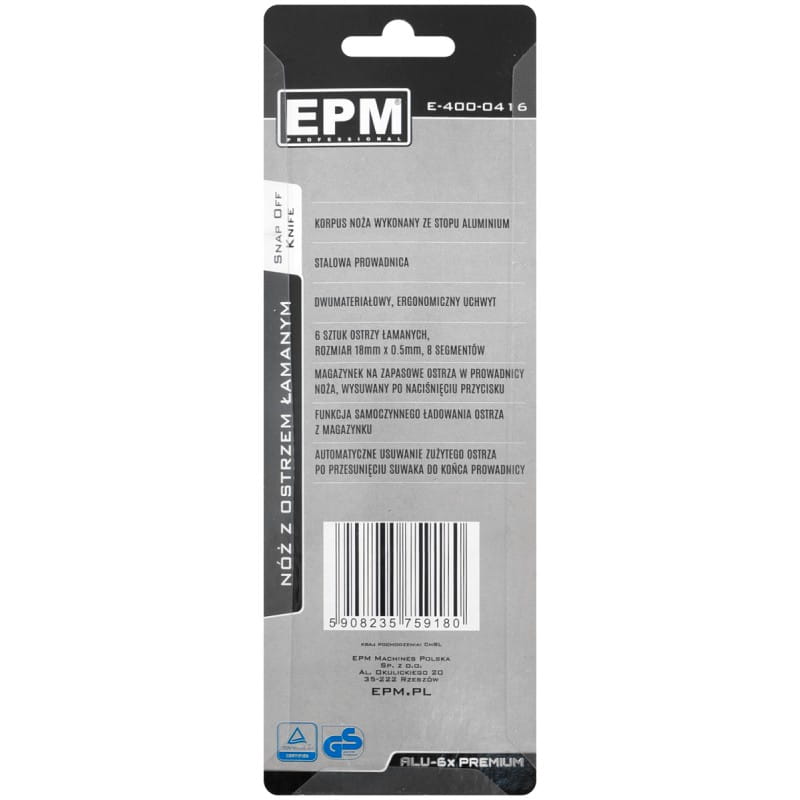 NÓŻ, NOŻYK Z OSTRZEM ŁAMANYM ALU-6X PREMIUM 18MM + 6 OSTRZY